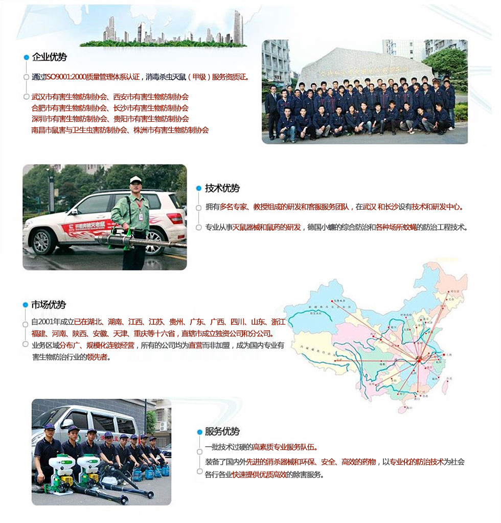 我們堅(jiān)持“誠信、高效、安全、環(huán)!钡姆⻊(wù)宗旨,所用器械均為世界優(yōu)質(zhì)產(chǎn)品,所用藥物均系國家藥檢部門和衛(wèi)生防疫部門批準(zhǔn)的安全、低毒的城市衛(wèi)生用藥,并根據(jù)具體作業(yè)環(huán)境和防治對(duì)象情況變化,制定具體防制方案,保證優(yōu)越的防治效果和人體安全。